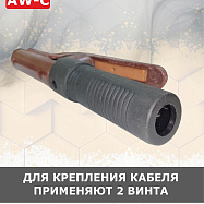 Конструкция отличается усиленной пружиной и изолированной эргономичной рукояткой, которая предотвращает перегрев и обеспечивает безопасность оператора. Винтовой зажим кабеля гарантирует надежный электрический контакт без потерь мощности.